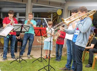 Jugend-Posaunenchor beim Open-Air Gottesdienst in der KiTa Friedrich Fröbel (Sommer 2015)
